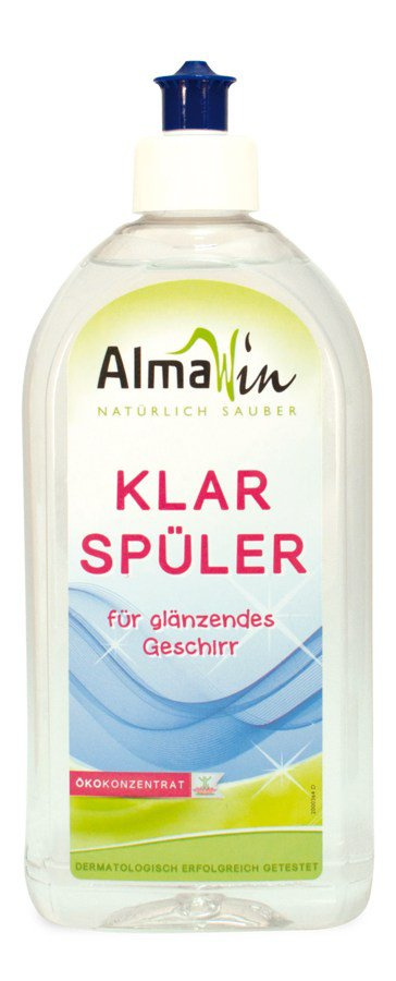 AlmaWin Klarspüler sorgt für die rückstandsfreie Trocknung und optimalen Glanz. Das AlmaWin Klarspüler ÖkoKonzentrat ist natürlich biologisch vollständig abbaubar. Falls Sie Streifenbildung auf Ihrem Geschirr haben, ist die Zugabe von AlmaWin Klarspüler zu hoch eingestellt. Bei Tropfen oder Fleckenbildung ist die Zugabe an AlmaWin Klarspüler zu niedrig eingestellt. Bei richtiger Dosierung läuft der Wasserfilm gleichmäßig ab. Überprüfen Sie bitte die richtige Einstellung anhand der Angaben Ihres Spülmaschinenherstellers.