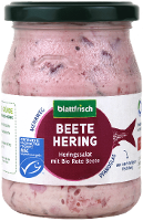 HERINGSHAPPEN ohne Haut 37% (HERING 98%****, Wasser, Rohrzucker , Salz, Säuerungsmittel: Essigsäure), Rote Bete* 17%, Rapsöl*, Trinkwasser, Gurken*, Rohrzucker*, Zwiebeln*, Äpfel getrocknet*, Sonnenblumenprotein*, Kräuter*, Gewürze* (u.a. Kümmel, Nelken), Salz, SENFSAATEN*, Stärke*, Branntweinessig*, Kräuteressig*, Verdickungsmittel: Guarkernmehl*, Johannisbrotkernmehl*.| Energie | Fett | gesättigte Fettsäuren | Kohlenhydrate | Zucker | Eiweiss | Salz |