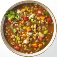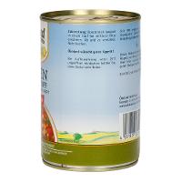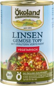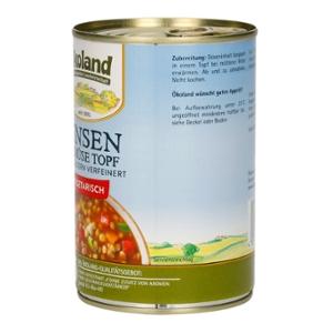 Trinkwasser, 24% Gemüse* - in veränderlichen Gewichtsanteilen (Tomaten*, Lauch*, Karotten*, Zwiebeln*, SELLERIE*), 19% Linsen*, Tomatenmark*, Sonnenblumenöl*, Steinsalz, WEIZENMEHL*, Rohrohrzucker*, Maisstärke*, Verdickungsmittel: Guarkernmehl*; Meersalz, Gewürze* (Macis*, Curcuma*, Pfeffer*), Kräuter* (Liebstöckel*, Petersilie*, Rosmarin*).| Energie | Fett | gesättigte Fettsäuren | Kohlenhydrate | Zucker | Ballaststoffe | Eiweiss | Salz |