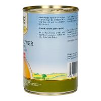 Trinkwasser, 32% Möhren*, Kartoffeln*, 4,5% SCHLAGSAHNE*, SELLERIE*, Zwiebeln*, Reissirup*, Reis*- und Maisstärke*, Sonnenblumenöl*, Meersalz, MILCHPULVER*, Ingwer*, Gewürze* (Macis*, Curcuma*, Pfeffer*, Knoblauch*), Kräuter* (Liebstöckel*, Petersilie*, Rosmarin*).| Energie | Fett | gesättigte Fettsäuren | Kohlenhydrate | Zucker | Ballaststoffe | Eiweiss | Salz |