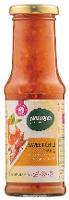 Wasser, Agavendicksaft*, rote Paprika*, Branntweinessig*, Apfelsaftkonzentrat*, Tapiokastärke*, Karotten*, rote Chili* 1,3 %, Ingwer*, Meersalz, Knoblauch*, SENFMEHL*, Cayennepfeffer* 0,03%, Verdickungsmittel : Guarkernmehl*| Energie | Fett | gesättigte Fettsäuren | Kohlenhydrate | Zucker | Eiweiss | Salz |