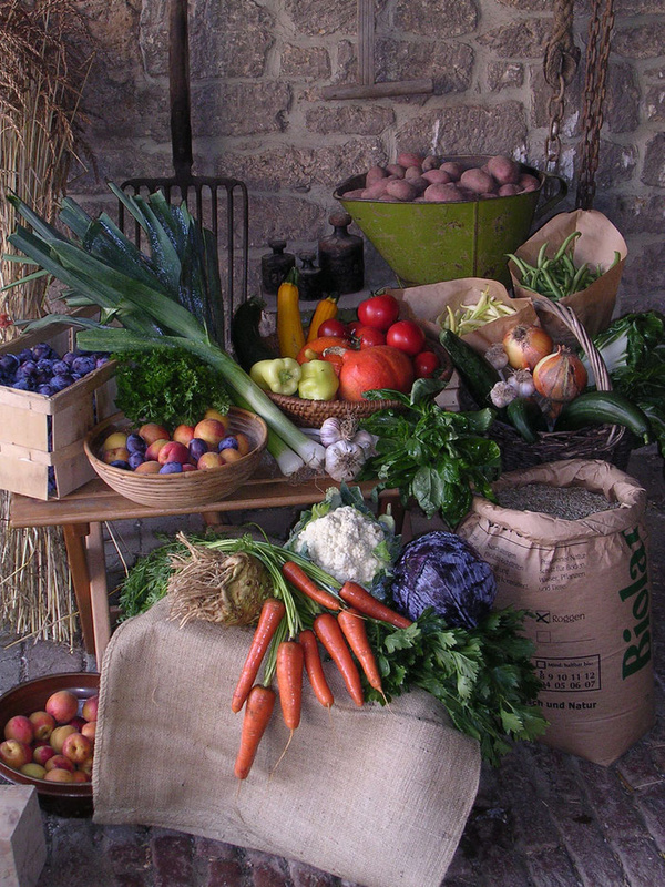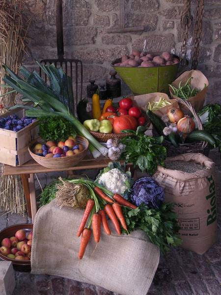 Obst u. Gemüse, Brot, Getreide, Wurst, Eier, verschiedene Öle