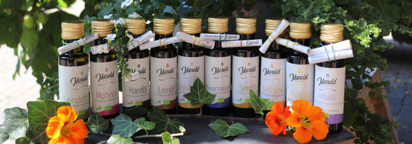 Unsere kaltgepressten Pflanzenöle – natürlich gesund, hochwertig, aus regionalem Bio- Anbau und für eine ausgewogene Ernährung förderlich.