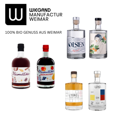 In der Wiegand Manufactur Weimar wird klassischer Geschmack und modernes Design in einer Flasche vereint. Frei nach dem Motto: „Weniger ist mehr“ werden in der Manufaktur mit einer kleinen 150-Liter-Destille zwei verschiedene Likör- und Gin-Sorten sowie ein Whisky hergestellt. Einmalige BIO Destillate, die Sie genießen können.